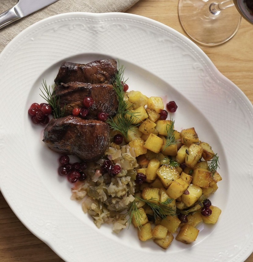 Откройте для себя уникальное блюдо из «Меню от Дениса Крупени»: нежные сердца индейки, замаринованные с паприкой и чесночным маслом, обжаренные на гриле до идеальной степени готовности. Соевый соус придаёт мясу глубину вкуса, а сальса из огурцов и брусника добавляют яркие акценты, гармонично дополняя картофельное сопровождение. Это блюдо — настоящее гастрономическое открытие, которое порадует даже самых искушённых гурманов.